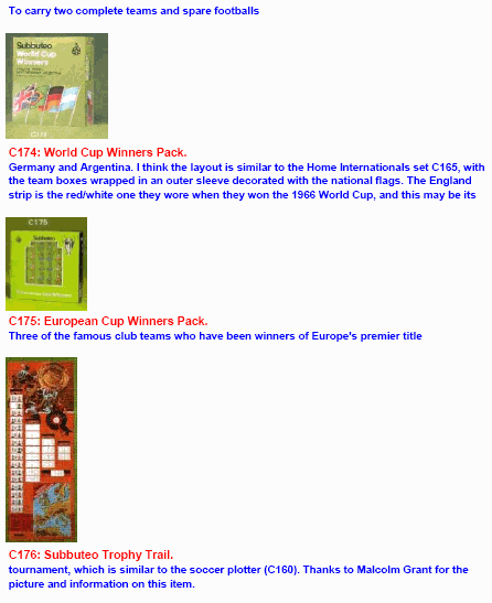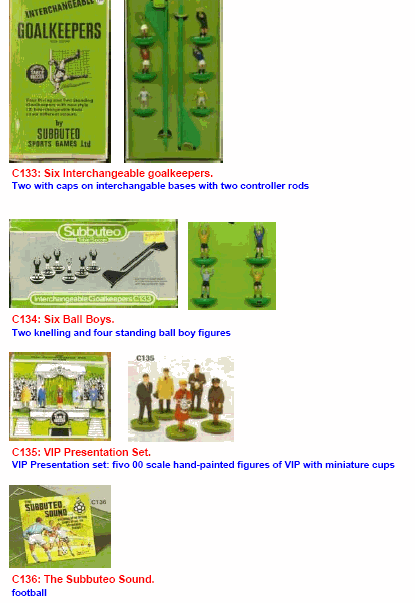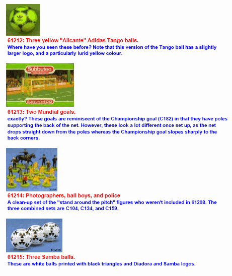La pagina relativa ad un elenco di accessori realizzati per il Subbuteo