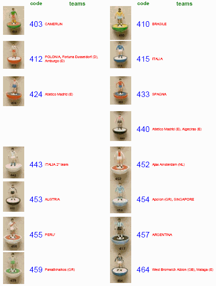 La pagina con l'elenco delle squadre realizzate per il Calcio in miniatura.